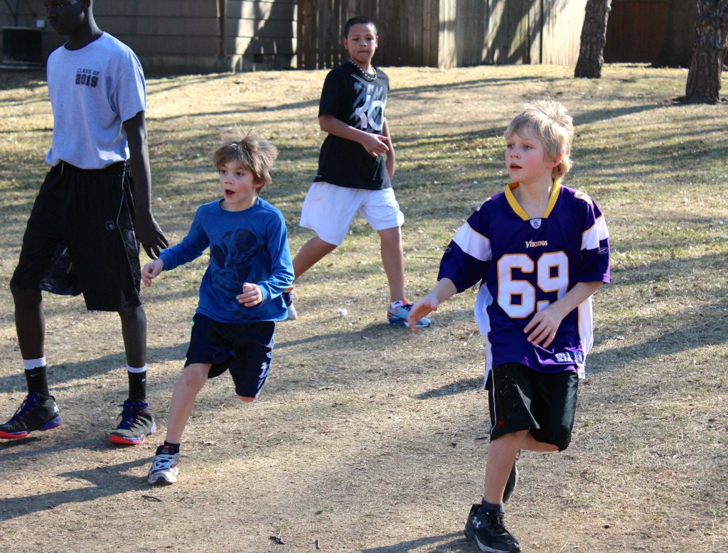 It’s the dance of friendship, this thing called football, young and old, strong and weak, black and white, pulling together, win or lose. They love it that I’m standing in the middle of the dance, shooting pictures, showing them how “Cool!” they look running the ball this way and that.