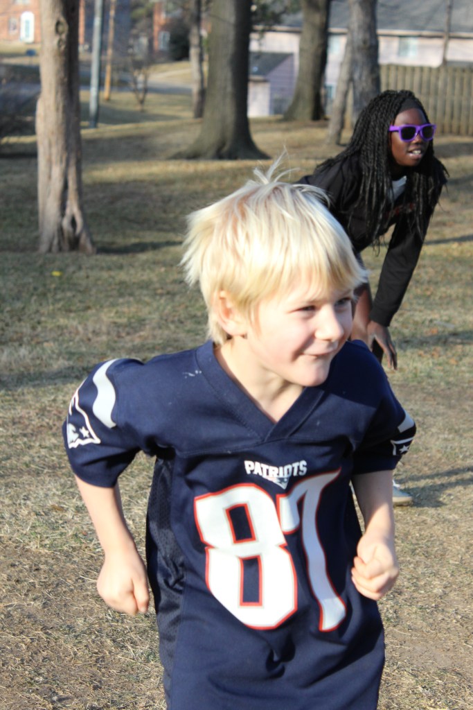 When little E escapes downfield I chase her down, hold her close on the sidelines, and throw words into the fray, “Great throw. Nice catch! Whooheee, that was awesome!”