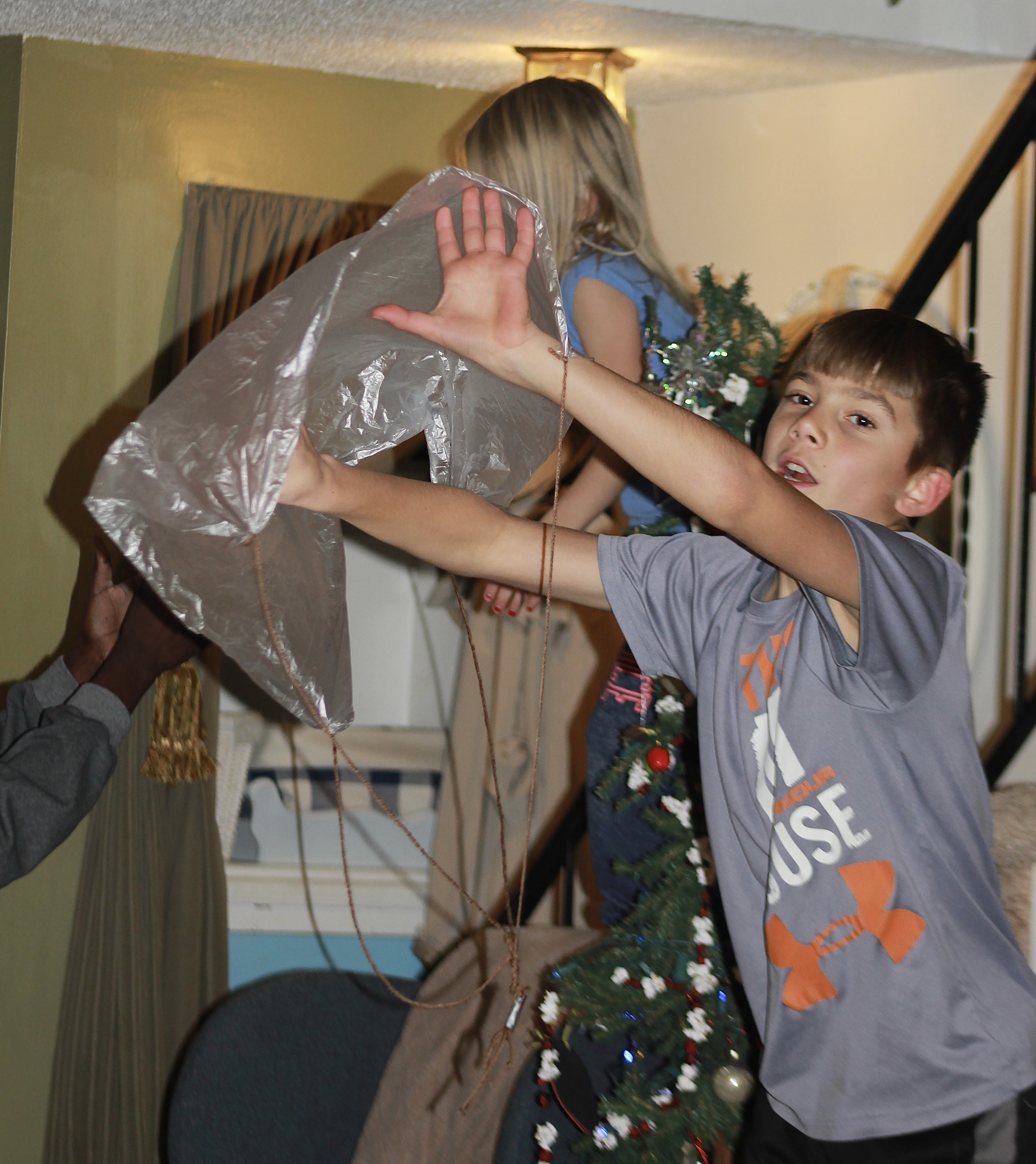 Watching Jo-Jo craft plastic-sack-man to throw,