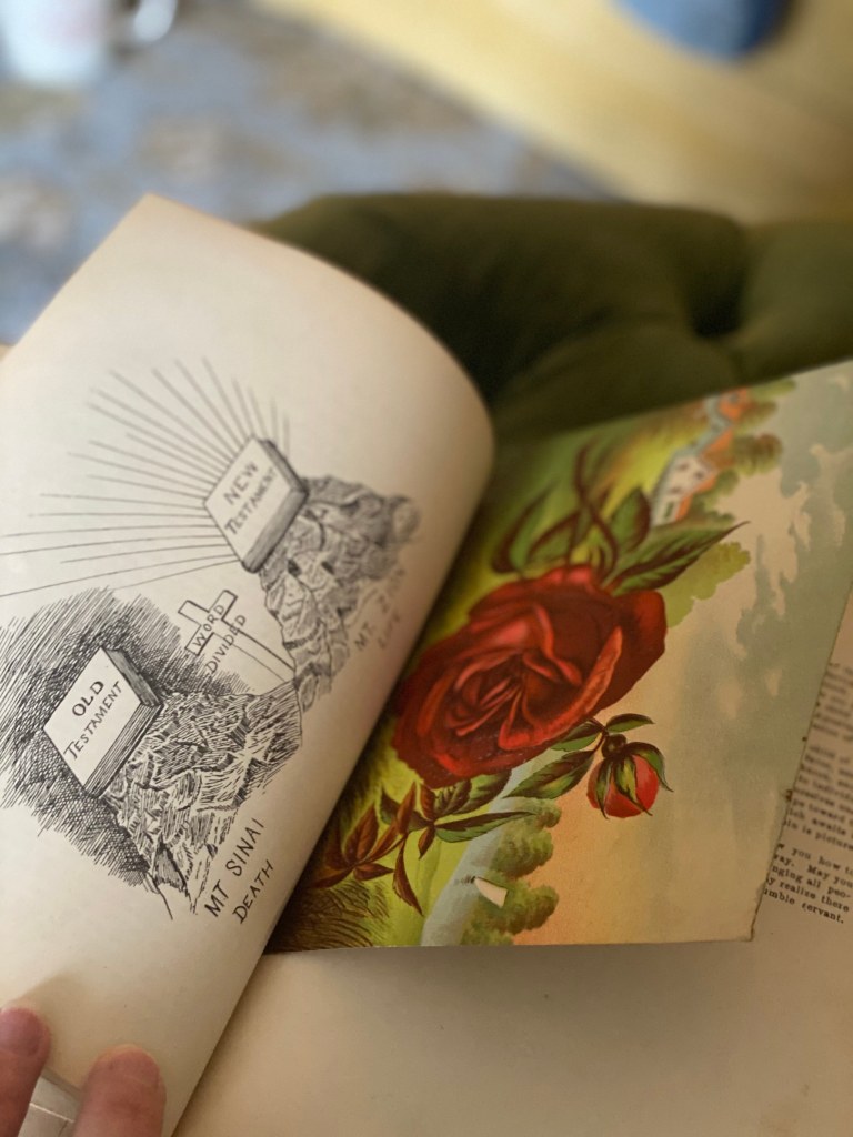 Recently, wishing I could call up a supportive dad or mom, distracting myself by browsing through musty books in an antique store, I unearthed an 1897 theology book, corners broken, cover barely hanging on—curious, I opened it. Inside the front cover these words dated 1953 scrawled across the page: